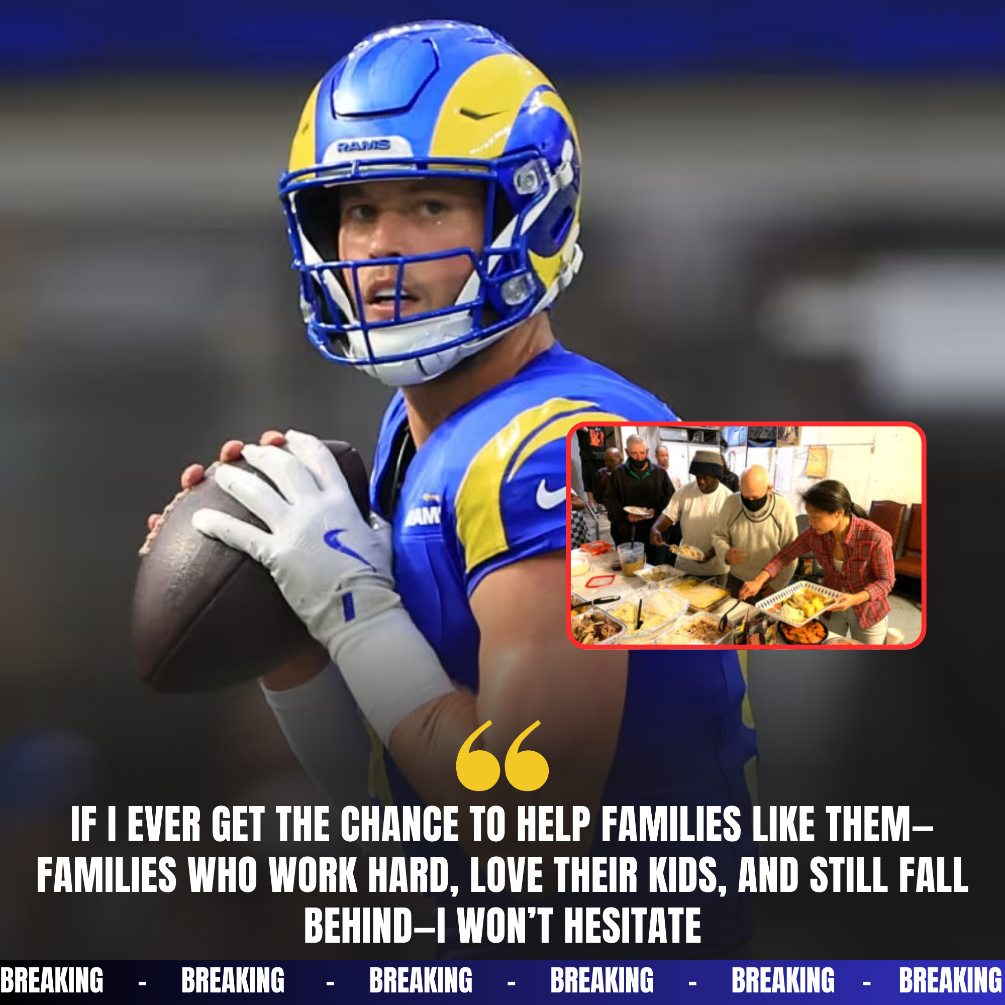 BREAKINGNEWS: Matthew Stanfford commits $3 million on Thanksgiving to support low-income families in LA Rams with a childhood story that leaves Rams Nation silent