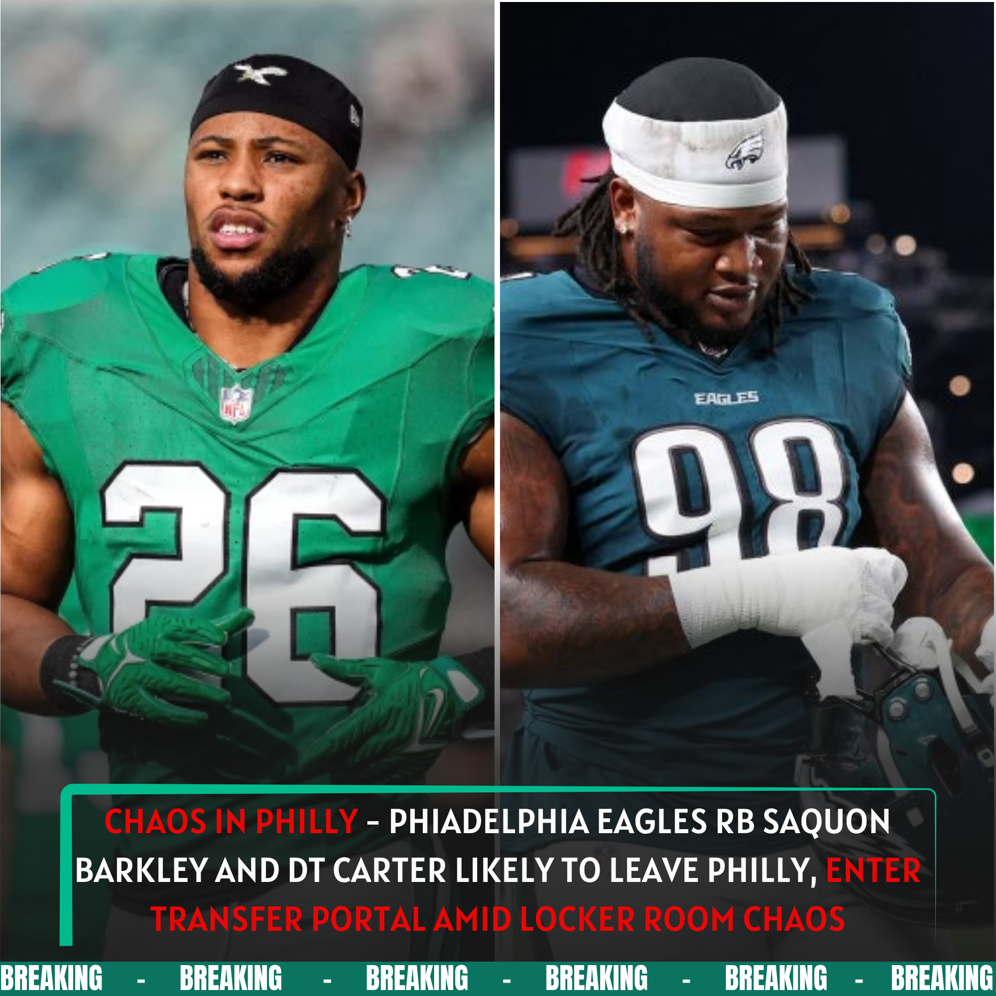 LATEST NEWS: Chaos in Philly – Phiadelphia Eagles RB Saquon Barkley and DT Carter likely to leave Philly, enter transfer portal amid locker room chaos