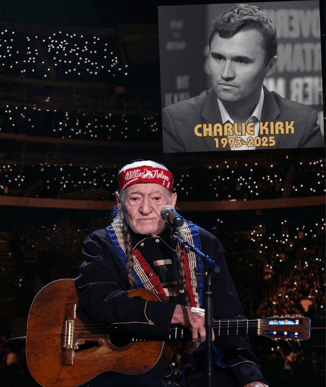 WILLIE NELSON’S FINAL FAREWELL: Before 30,000 fans at Farm Aid 40, Willie removed his hat, bowed his head — and silence fell. No lights, no fanfare, just a trembling voice filled with the weight of a nation’s grief. His song, a moving tribute to Charlie Kirk, became a prayer, a goodbye, and a promise that his legacy will live on forever.